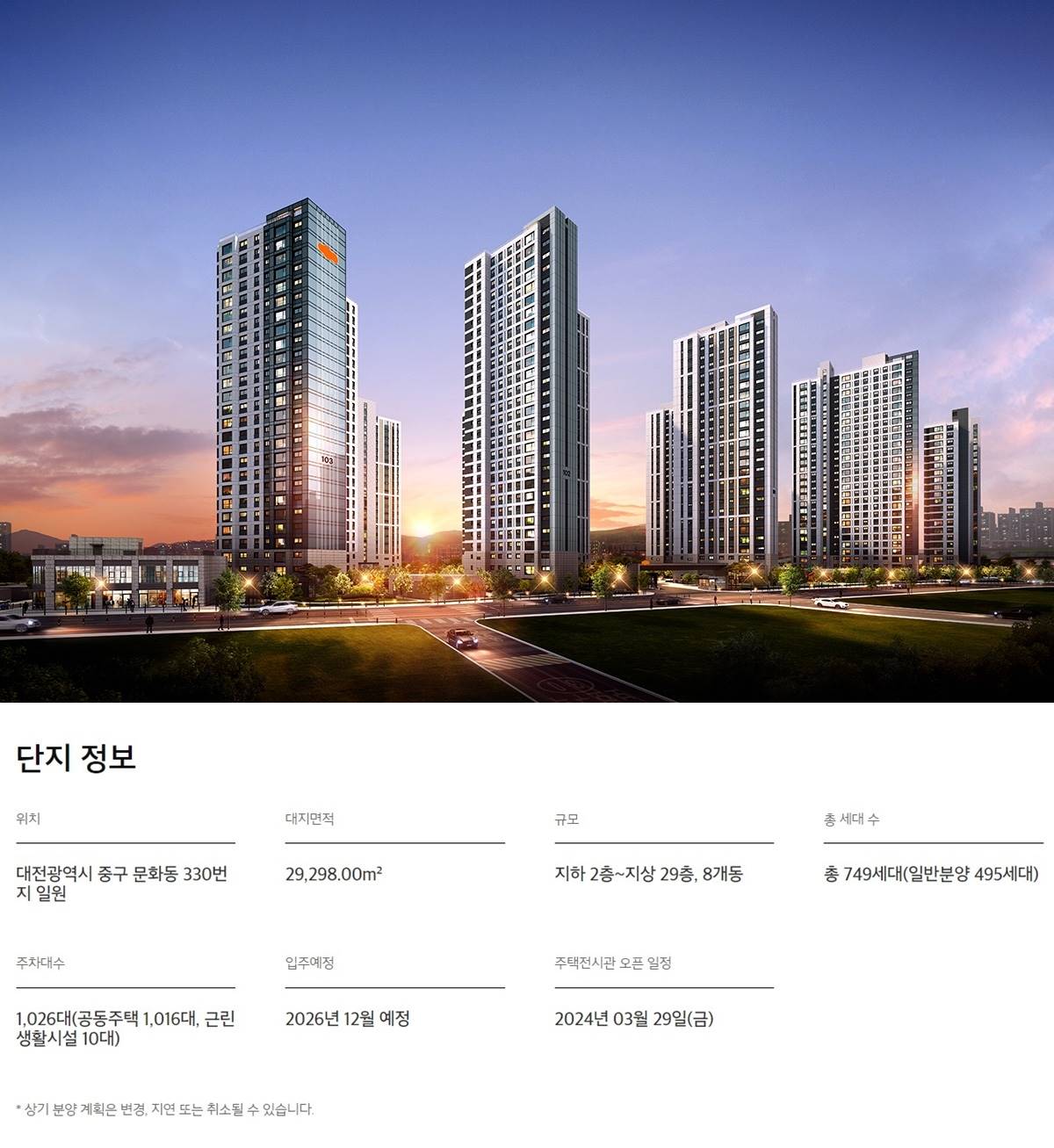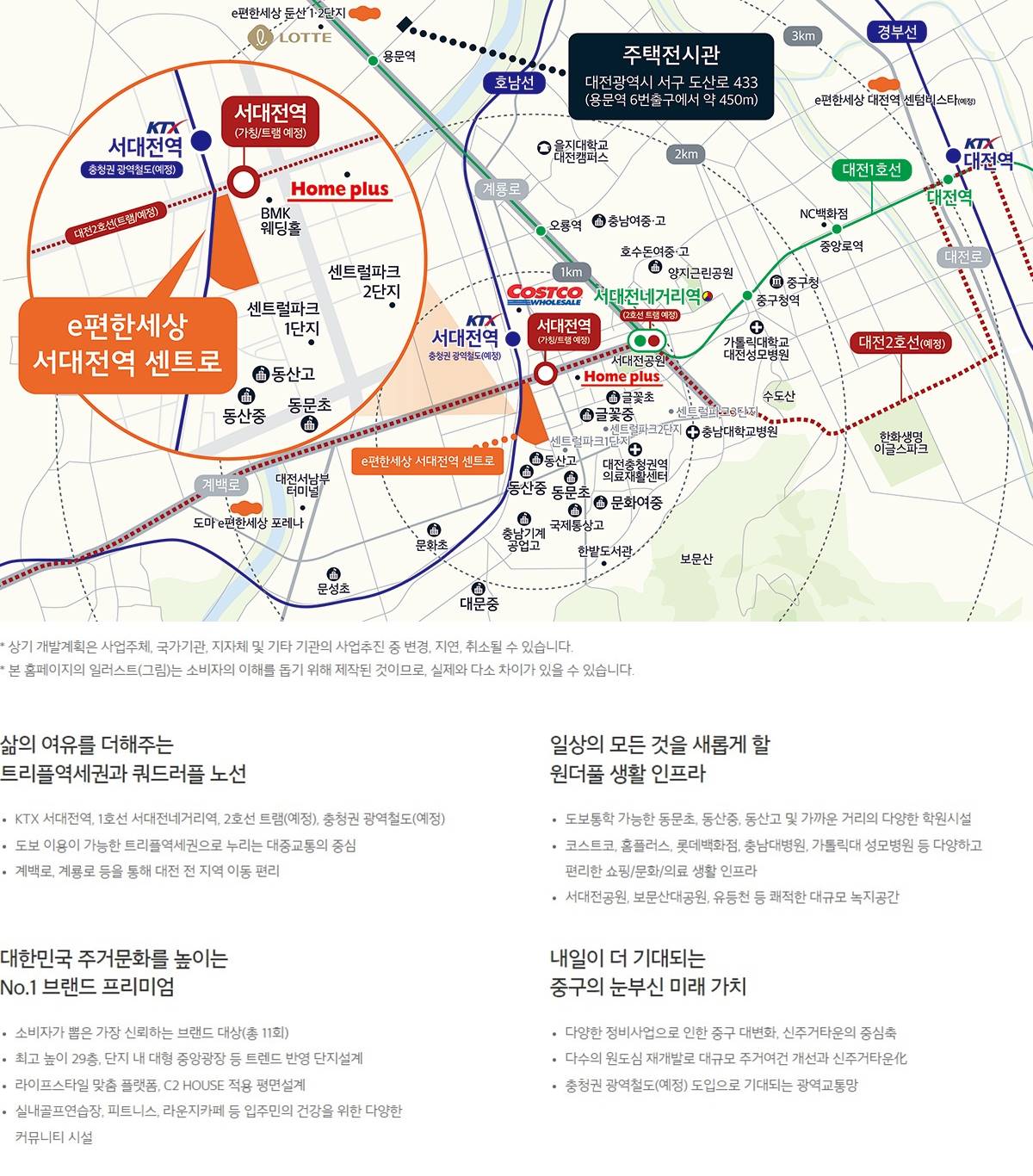 서대전역 초역세권의 압도적 입지 KTX 서대전역과 지하철역을 아우르는 쿼드러플 교통망 교통의 요충지인 서대전역 인근에 위치하여 대전 전역은 물론 수도권까지 빠르게 연결되는 최상의 교통 인프라를 누릴 수 있습니다. 주거 선호도 높은 브랜드 대단지 이편한세상만의 프리미엄 가치로 완성되는 랜드마크 검증된 브랜드 파워와 대단지의 여유를 담아 대전 주거 문화를 선도하는 고품격 랜드마크 아파트를 선보입니다. 혁신적인 C2 하우스 특화 설계 입주민의 라이프스타일에 맞춘 가변형 구조와 넉넉한 수납 이편한세상만의 주거 플랫폼인 C2 하우스를 적용하여 공간의 효율성을 극대화하고 최적의 주거 쾌적성을 실현했습니다. 중심 상권의 풍부한 생활 인프라 코스트코와 홈플러스 등 대형 편의시설이 인접한 환경 쇼핑과 문화, 의료시설이 집중된 원도심의 인프라를 그대로 공유하여 입주와 동시에 완성된 편리한 생활이 가능합니다. 안심할 수 있는 교육 및 에코 라이프 초중고 학군 인접 및 유등천과 공원을 품은 숲세권 도보권 교육 환경과 더불어 자연 휴식 공간이 어우러져 아이 키우기 좋고 건강한 삶을 영위하는 친환경 단지를 지향합니다. 선착순 동호지정 계약 진행 중 모델하우스 방문을 통한 잔여 세대 및 혜택 확인 가능 현재 모델하우스에서 잔여 세대 선착순 계약을 진행하고 있으니 특별한 입주 혜택과 상세 조건을 현장에서 직접 확인해 보시기 바랍니다.